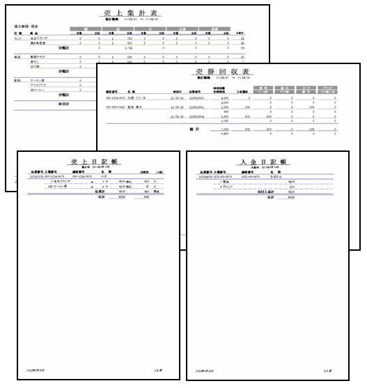 売上日記帳/売上集計表/売掛回収表/入金日記帳