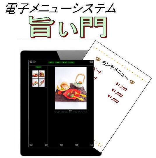 旨ぃ門は料理写真を見て注文して頂くタブレットコンピュータに最適化したメニューソフトウェアです。タブレットの大画面を利用して料理写真と説明で視覚的に料理の魅力を訴えます。