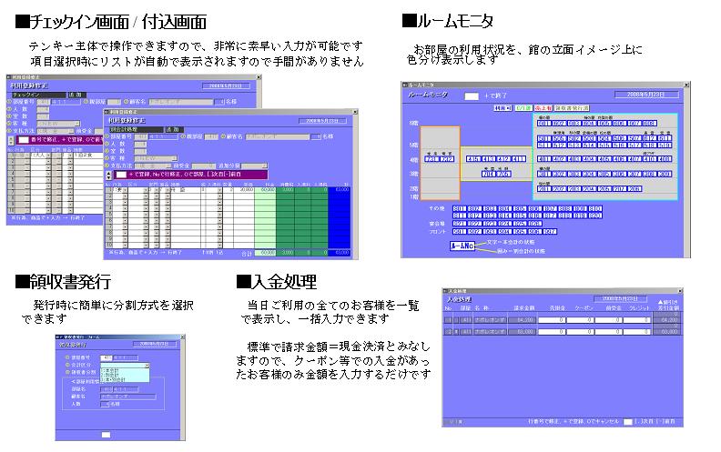 ・フロント業務を簡単迅速にサポートします。・特徴的な4つの機能